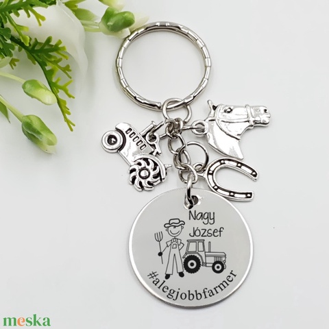 Gazdának ajándék - gazda kulcstartó grafikával, egyedi névvel, felirattal