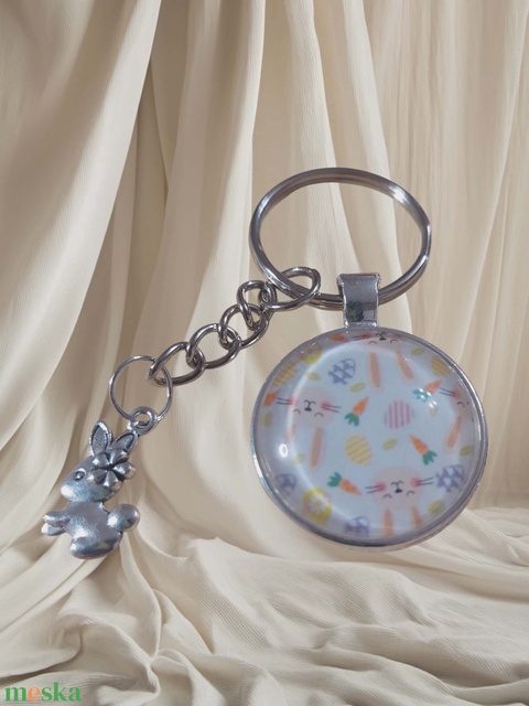 Vidám nyuszis kulcstartó-húsvéti tojásos, répás minta