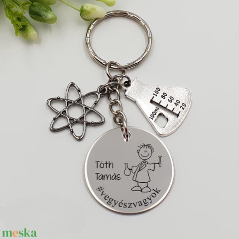 Vegyésznek ajándék - vegyész kulcstartó grafikával, egyedi névvel, felirattal