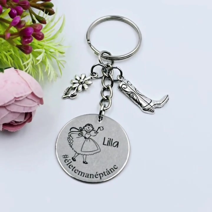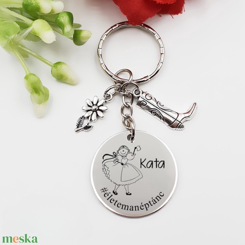 Néptáncosoknak ajándék - néptáncos kulcstartó grafikával, egyedi névvel, felirattal