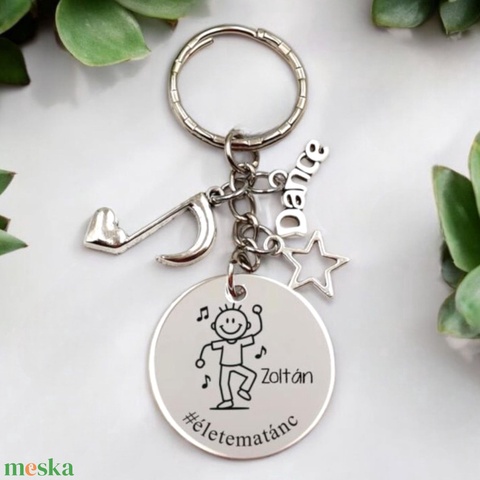 Táncosnak ajándék - táncos kulcstartó grafikával, egyedi névvel, felirattal