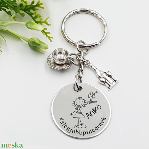 Pincérnőnek ajándék - pincérnő kulcstartó grafikával, egyedi névvel, felirattal
