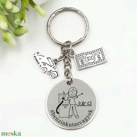 Benzinkutasnak ajándék - benzinkutasnő kulcstartó grafikával, egyedi névvel, felirattal