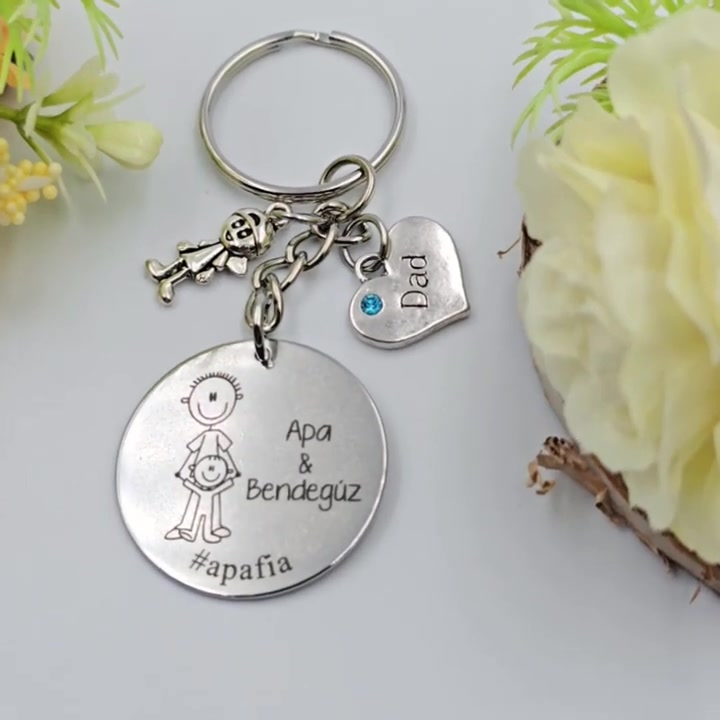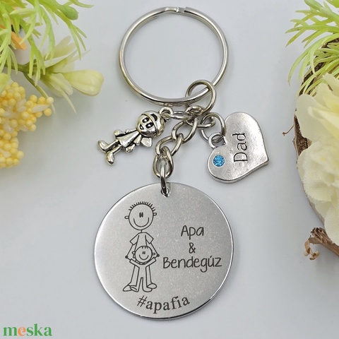 Apának ajándék - Apa-fia kulcstartó grafikával, egyedi névvel, felirattal