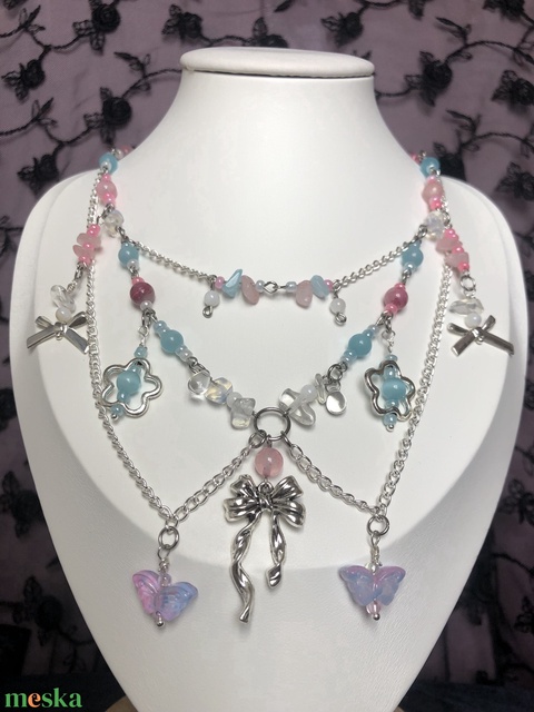 Rózsaszín, kék nyaklánc
