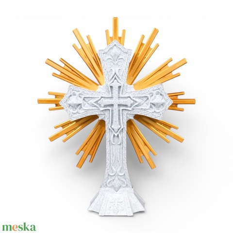 Szent Kereszt asztali és fali dísz arany dicsfénnyel – A remény és a hit állandó szimbóluma