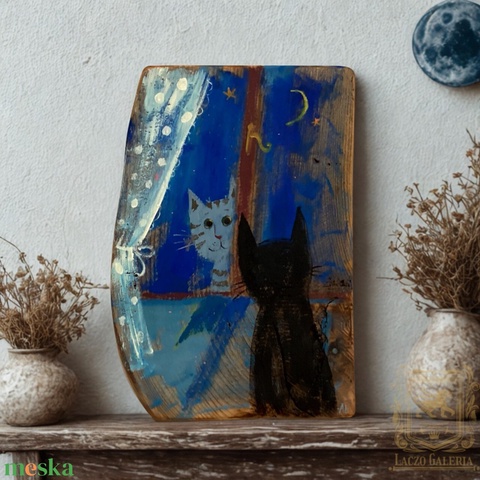Gyere Kormi, hív az este! - Rusztikus Fatábla, Ajándék ötlet - Egyedi Falidísz - Macska, Cica, Fekete macska