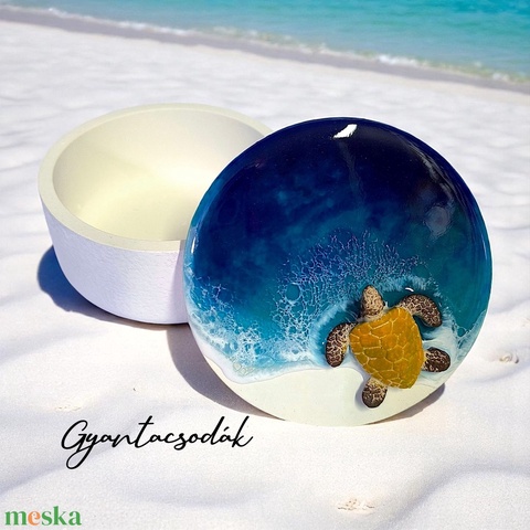 ÉKSZERTARTÓ - TENGERI HULLÁMOKKAL ÉS TEKNŐSSEL - GYANTACSODÁK
