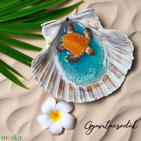 ÉKSZERTARTÓ - VALÓDI ÓRIÁSKAGYLÓ GYŰRŰTARTÓ - TÜRKIZ, TEKNŐSSEL - GYANTACSODÁK