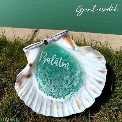 ÉKSZERTARTÓ BALATON MINTÁVAL - VALÓDI ÓRIÁSKAGYLÓ GYŰRŰTARTÓ 3 - GYANTACSODÁK
