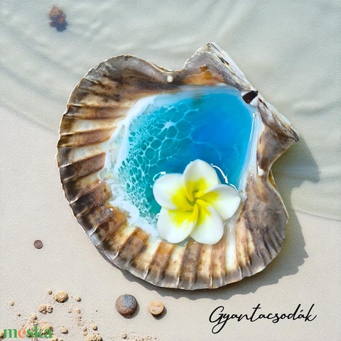 ÉKSZERTARTÓ FEHÉR PLUMERIA VIRÁGGAL - VALÓDI ÓRIÁSKAGYLÓ GYŰRŰTARTÓ - GYANTACSODÁK