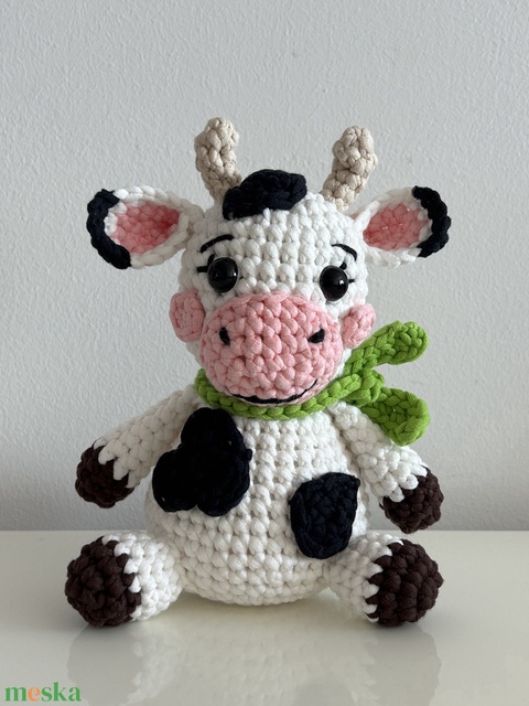 Horgolt Boci Figura - Kézműves Amigurumi Tehénke, Prémium Pamut-Nylon Játék