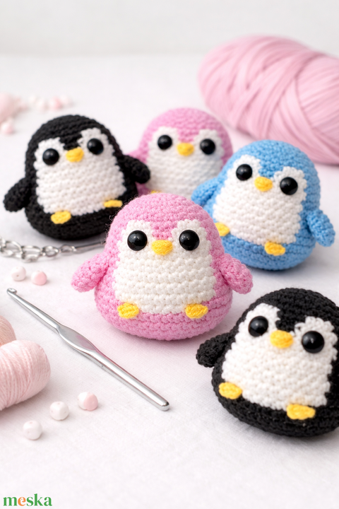 Kézzel horgolt aranyos pingvinek