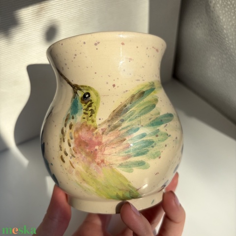 Kerámia bögre kolibri és virág mintával