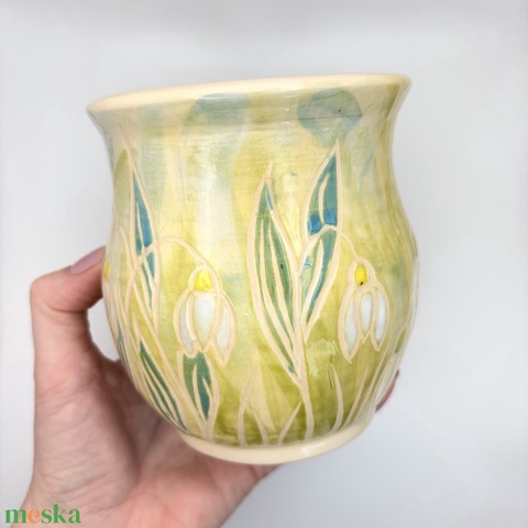 Kerámia bögre hóvirágokkal