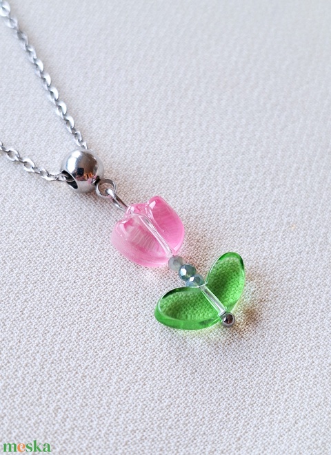 Nemesacél nyaklánc tulipán medállal