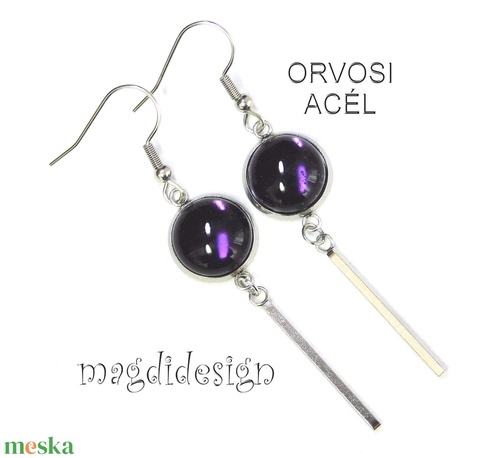 Ametiszt lila üvegékszer lógós fülbevaló 1