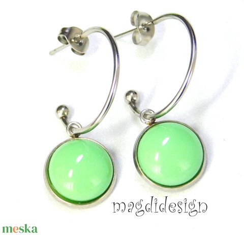 Almazöld üvegékszer stiftes lógós nemesacél fülbevaló