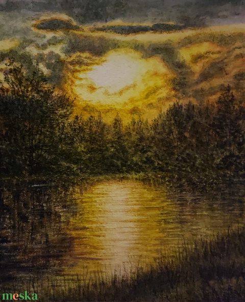 Akrilfestmény: Naplemente a tónál