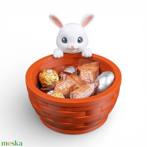 Tökéletes választás apró csokoládék, hímes tojások vagy tavaszi meglepetések stílusos tálalására. Egyedi kialakításának köszönhetően a peremen kukucskáló nyuszi garantáltan a gyerekek és a felnőttek kedvence lesz az ünnepi pillanatokban.