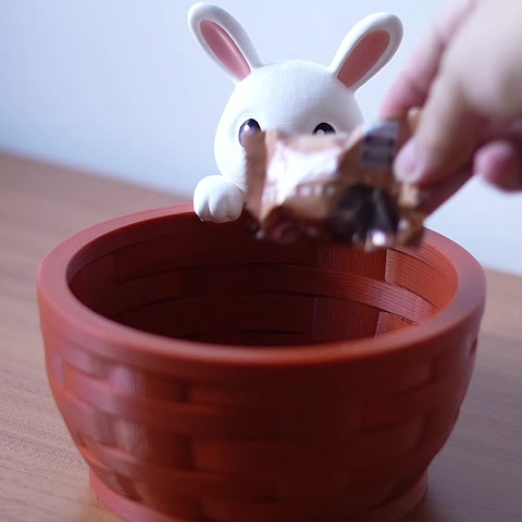 Kialakítás: részletgazdag, fonott textúrájú kosár és rögzített nyuszi figura