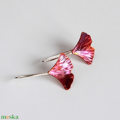 Ginkgo levél fülbevaló vörösrézből ezüst szárral