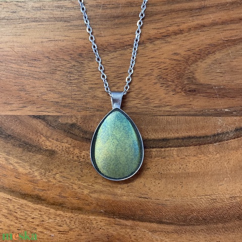 Eozinos mentett porcelán darabok - nyaklánc, nemesacél csepp medálos