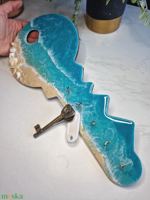 Kulcs alakú tengerpart hatású fali kulcstartó