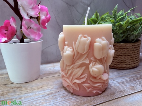 Kézműves tulipánmintás díszgyertya – rózsaszín átmenetes színben