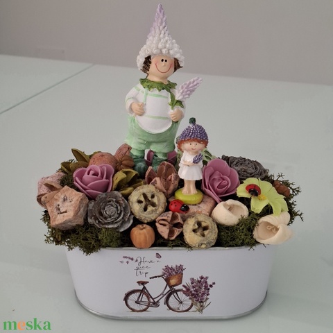 Levendulás asztaldísz ovális bádogkaspóban