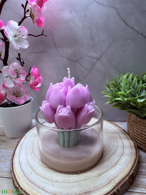 Tulipán csokor gyertya üvegben – tavaszi virágos dekoráció