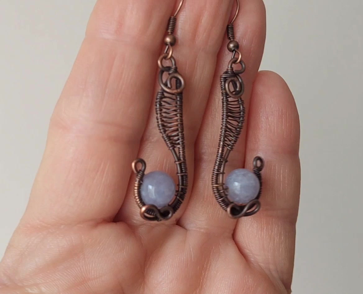 Vörösréz fülbevaló akvamarin ásvány kövekkel