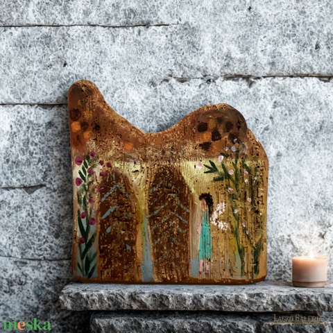 Tündérkert - Rusztikus Fatábla, Ajándék ötlet - Egyedi Falidísz, Angyal, Tündér, virág