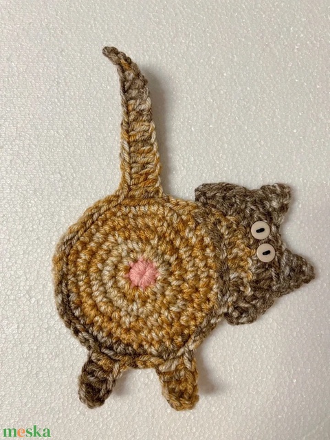 Horgolt cica poháralátét, egyedi darab.
