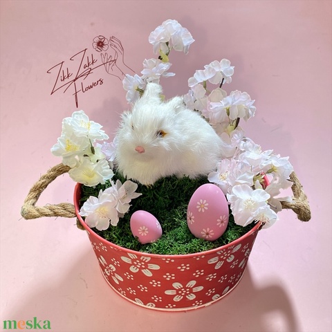 Húsvéti Nyuszis Virágkompozíció Dekor Kosárban