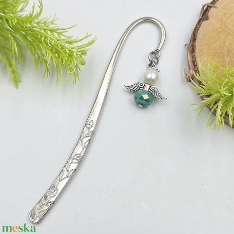 Zöldeskék-fehér angyalkás könyvjelző