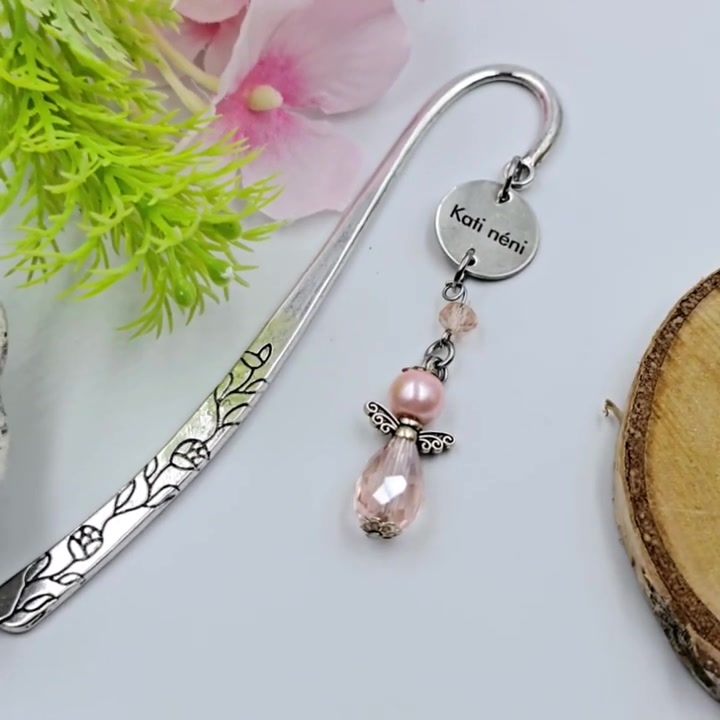 - Anyag/Összetevő fém könyvjelzőszár, nemesacél medál, csiszolt gyöngy angyalka
