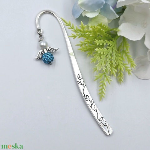 Türkizkék-fehér shamballa- és teklagyöngy angyalkás könyvjelző