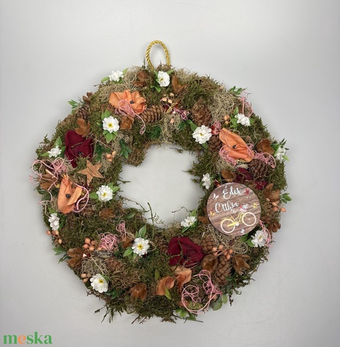 Villantós.4 - Pehelykönnyű ajtódísz napfényben megcsillanó rosegold elemekkel és barna "Édes Otthon" fatáblácskával