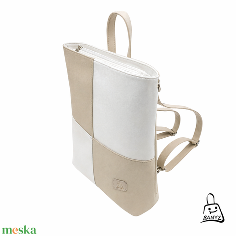 Egy táska, ami valóban alkalmazkodik a napodhoz. Ez a bézs–fehér többfunkciós Banyz táska hordható hátitáskaként, válltáskaként vagy kézitáskaként, így nem kell napközben táskát cserélned. Letisztult színei könnyen beilleszthetők a mindennapi stílusba, praktikus kialakítása pedig a mindennapok valós igényeire lett tervezve.