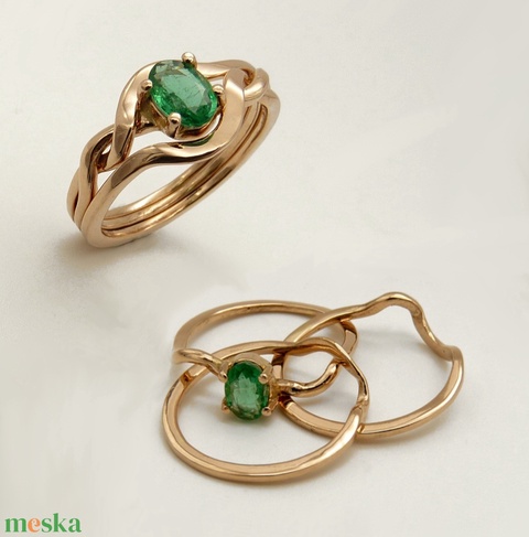 Rosé arany ördöglakat gyűrű smaragddal