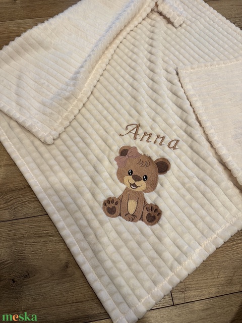 Egyrétegű babatakaró -maci lány mintával, névre szóló