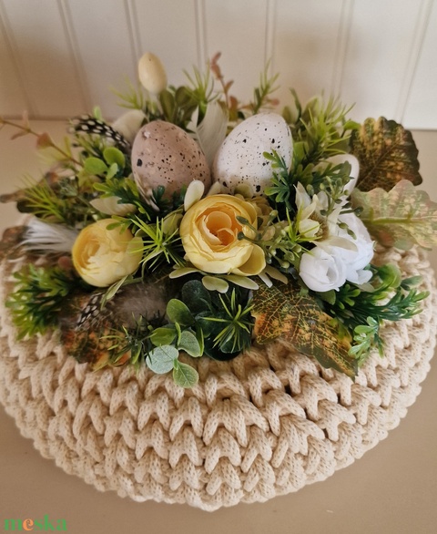 - Anyag/Összetevő újrahasznosított pamut fonal, szalmakoszorú