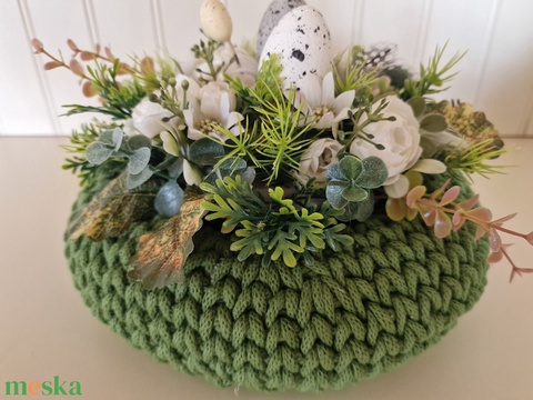 Horgolt tavaszi, húsvéti koszorú mohazöld színben