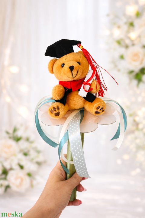 Ballagó plüss csokor – 30 cm – kézzel készített ballagási ajándék