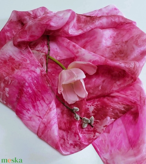 Tavaszi, batikolt, pink selyemkendő