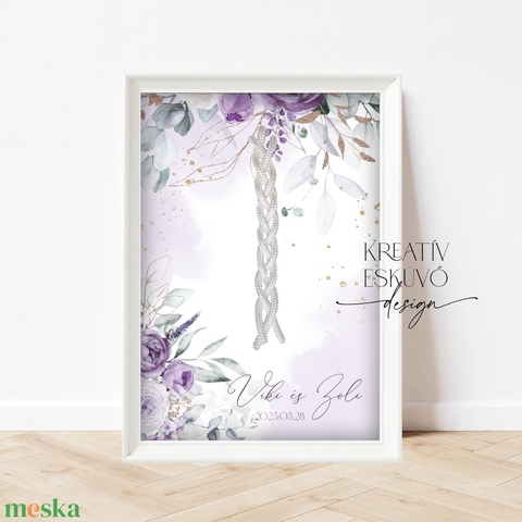 Kötélceremónia tábla - lila-arany virágos