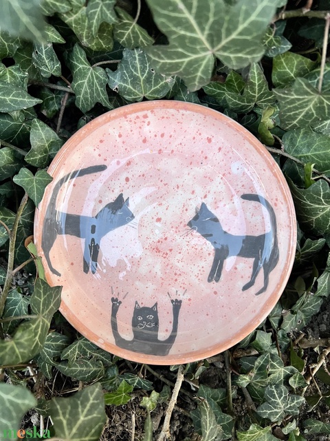 Kézzel festett kerámia tál – „Fekete macskák”