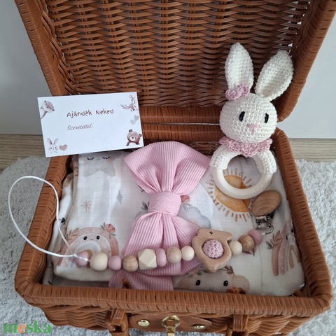Nyuszis babalátogató ajándékcsomag bőröndben