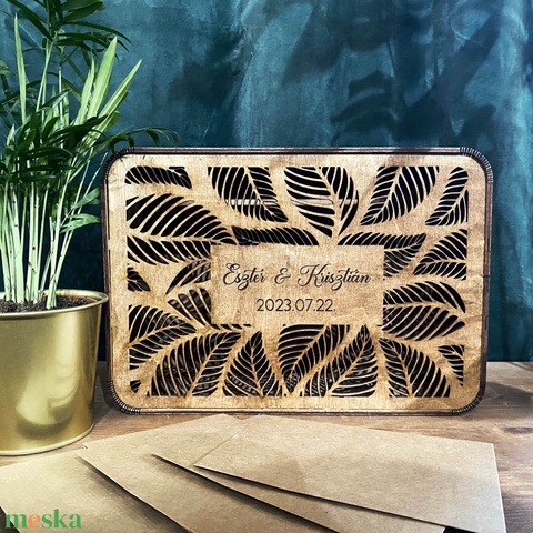 Borítékgyűjtő doboz - Levél mintás - Retró